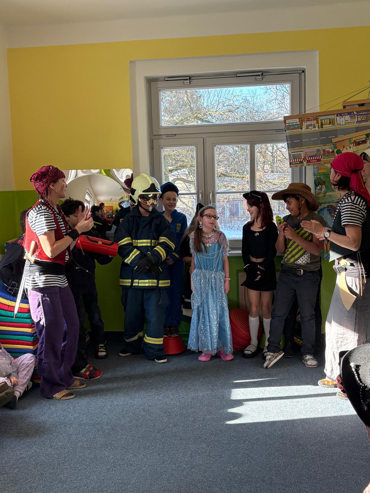Na našem prvním stupni jsme si nedávno užili veselý maškarní den, který byl inspirovaný tradičním masopustem. I když dnes už děti nechodí v klasických masopustních maskách, přišly do školy v nejrůznějších nápaditých kostýmech, takže škola byla hned od rána plná barev, smíchu a dobré nálady.