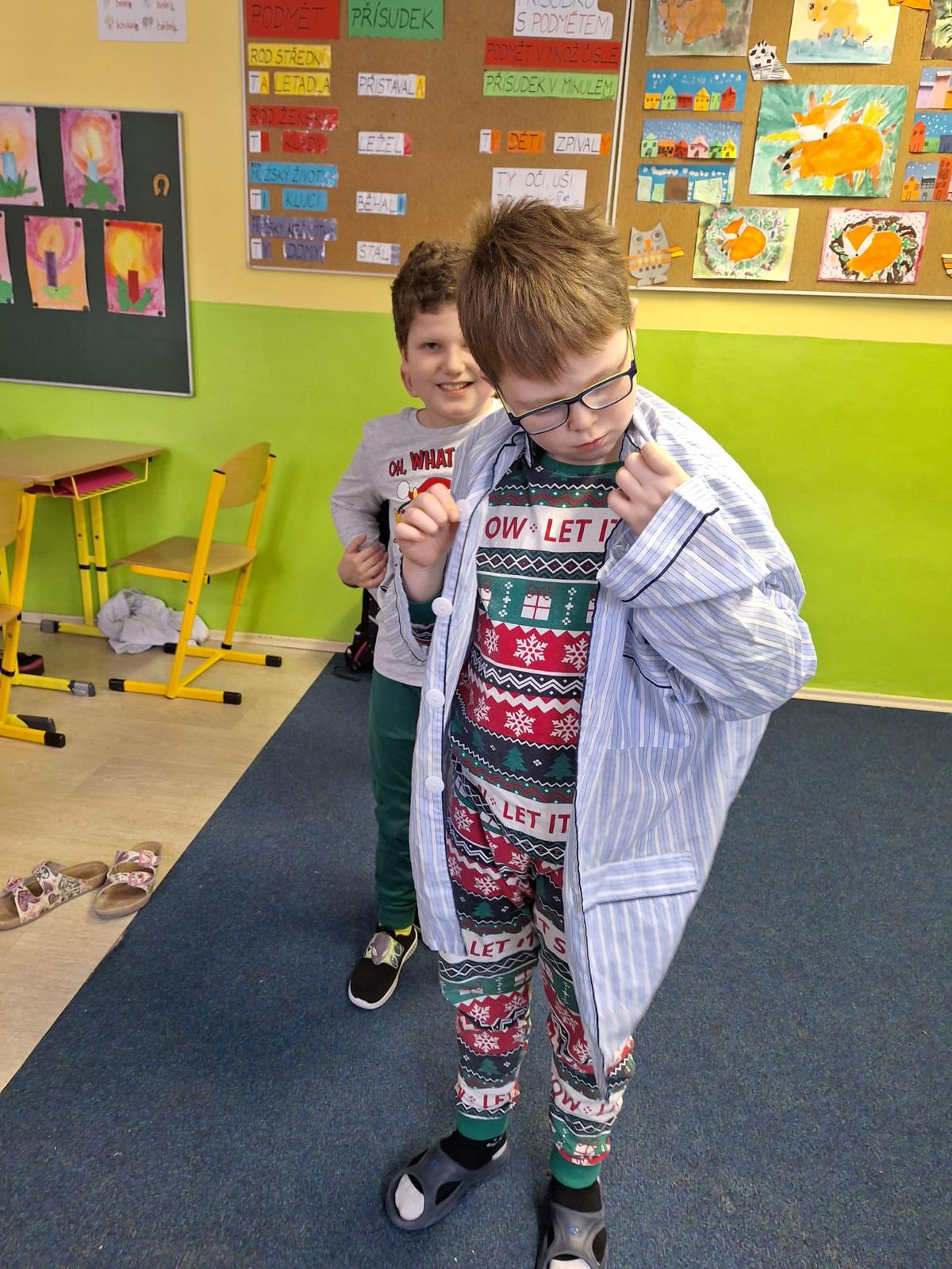 Dalším z oblíbených školních dnů se stal pyžamový den, kdy děti přišly do školy v pyžamech a s plyšáky v náručí. Hned od rána panovala veselá a uvolněná atmosféra, plná pohody.
